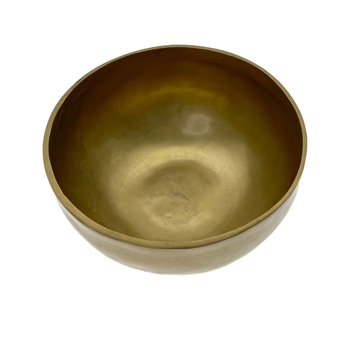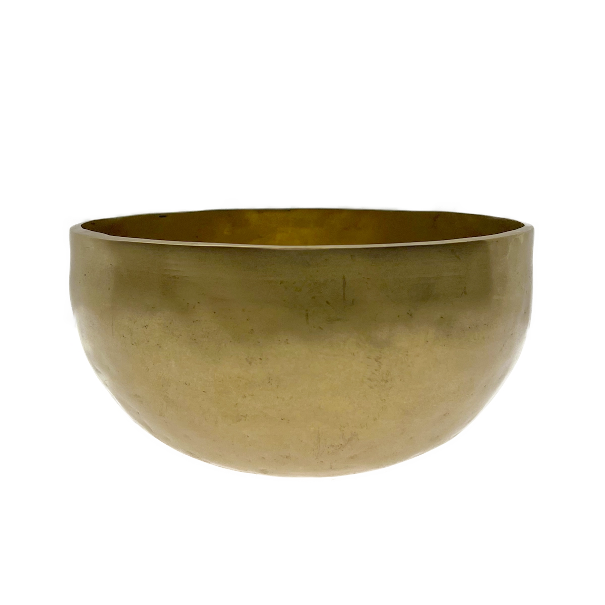 Handgemaakte klankschaal ('Singing Bowl') uit Nepal. De handmatige productie vindt van oudsher plaats in de Himalaya en dat geldt ook voor deze klankschaal. Stuk voor stuk beluisterden we de klankschalen bij onze producent in Bouddha, de Boeddhistische UNESCO wijk in Kathmandu, en selecteerden enkel de 'beste' klankschalen met een mooi resonerend, 'zingend' en karaktervol geluid. Dat vinden wij het belangrijkste kenmerk van een goede klankschaal.