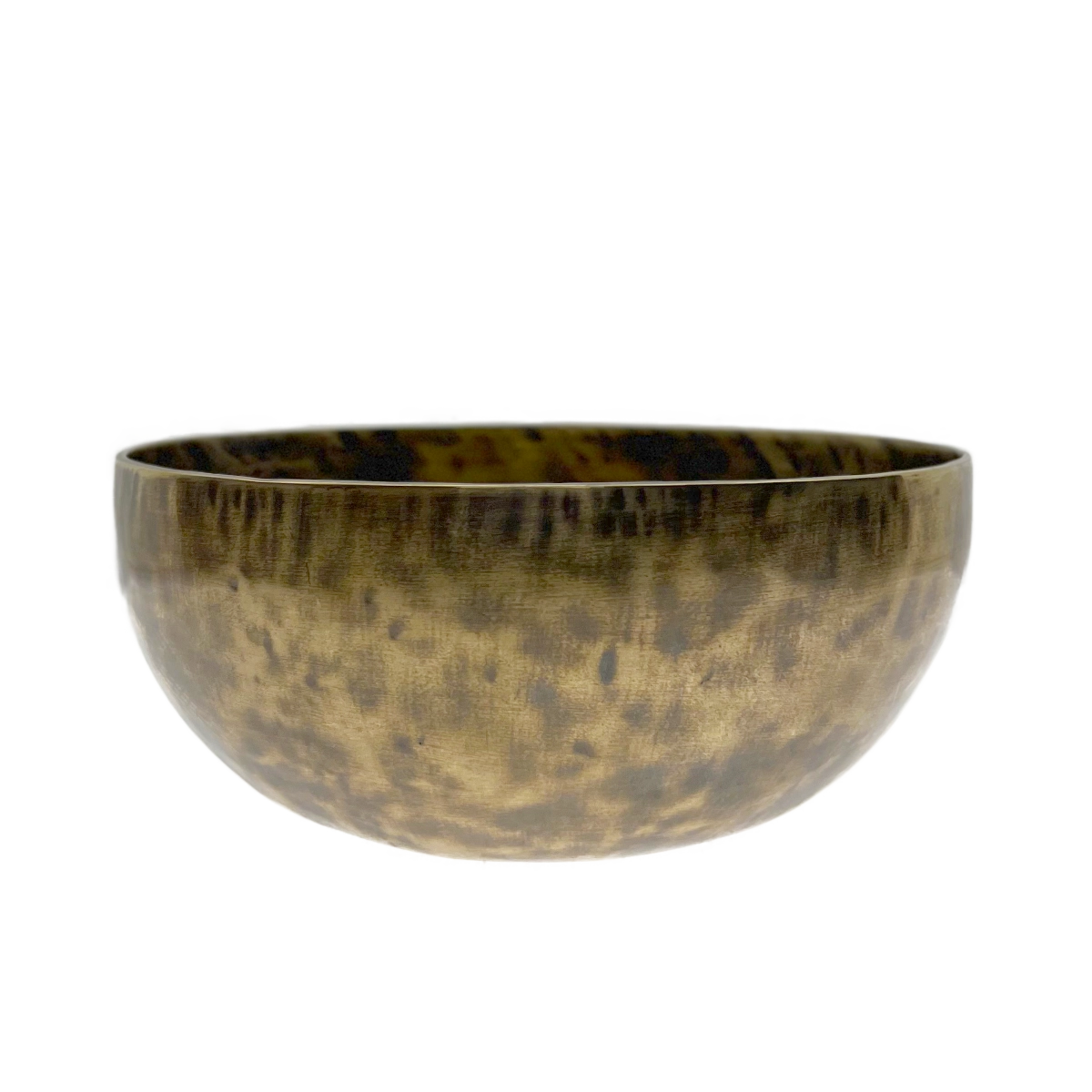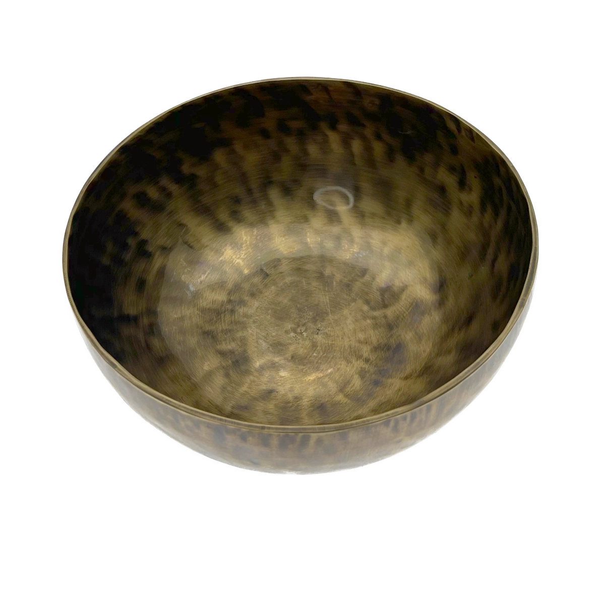 Handgemaakte klankschaal ('Singing Bowl') uit Nepal. De handmatige productie vindt van oudsher plaats in de Himalaya en dat geldt ook voor deze klankschaal. Stuk voor stuk beluisterden we de klankschalen bij onze producent in Bouddha, de Boeddhistische UNESCO wijk in Kathmandu, en selecteerden enkel de 'beste' klankschalen met een mooi resonerend, 'zingend' en karaktervol geluid. Dat vinden wij het belangrijkste kenmerk van een goede klankschaal.