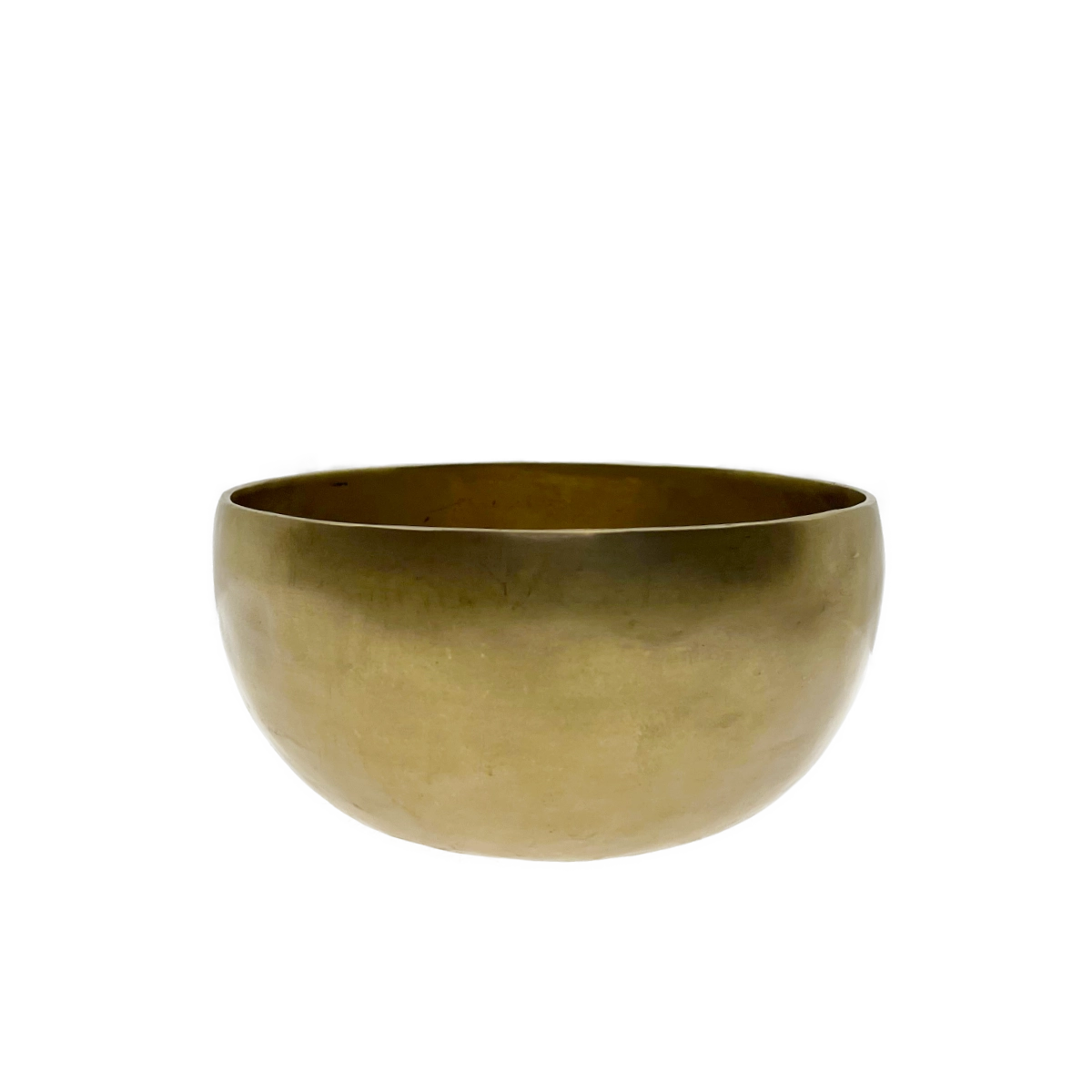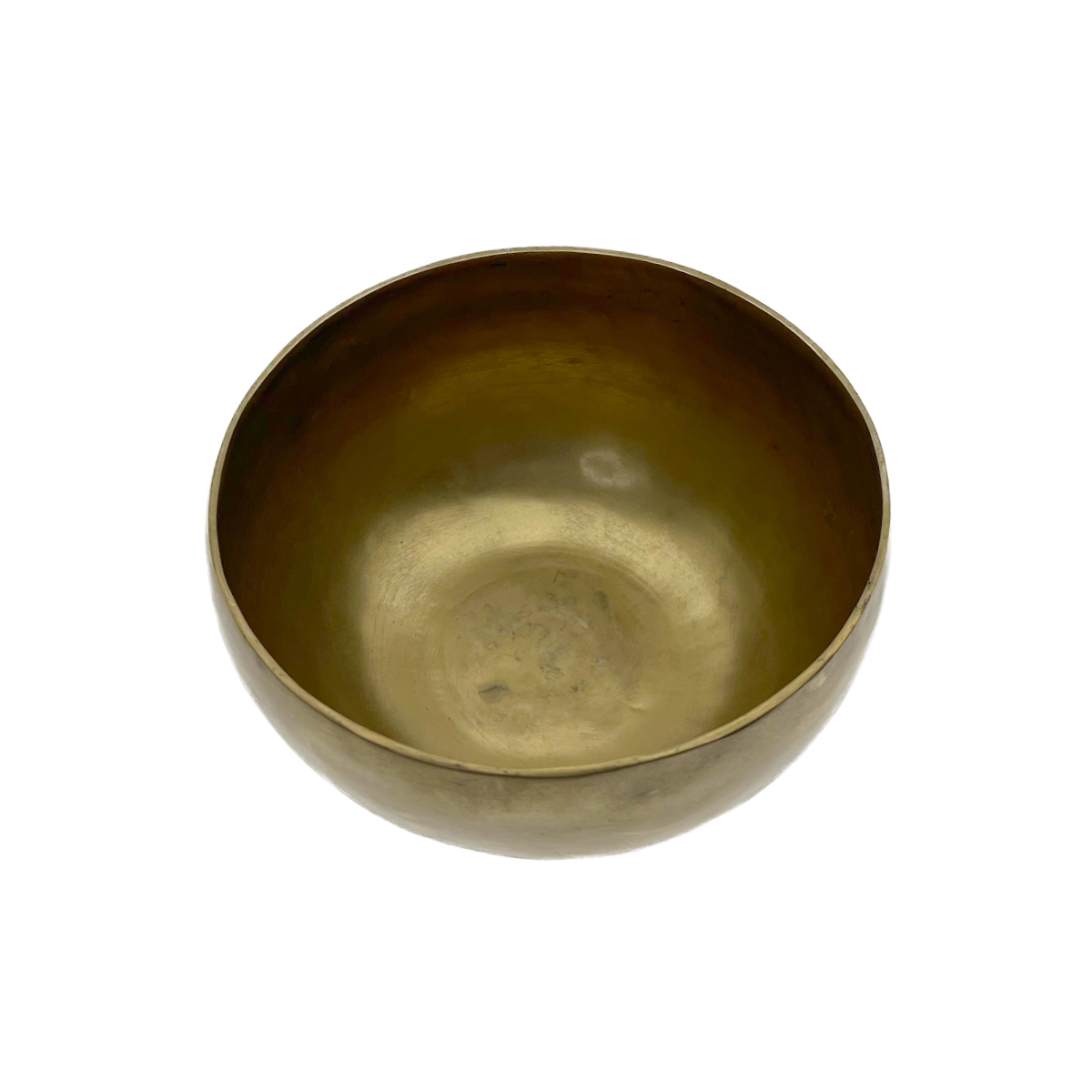Handgemaakte klankschaal ('Singing Bowl') uit Nepal. De handmatige productie vindt van oudsher plaats in de Himalaya en dat geldt ook voor deze klankschaal. Stuk voor stuk beluisterden we de klankschalen bij onze producent in Bouddha, de Boeddhistische UNESCO wijk in Kathmandu, en selecteerden enkel de 'beste' klankschalen met een mooi resonerend, 'zingend' en karaktervol geluid. Dat vinden wij het belangrijkste kenmerk van een goede klankschaal.